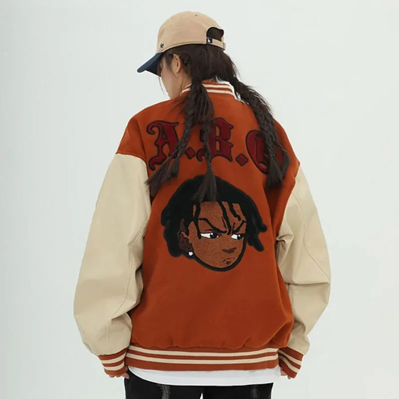 Hip Hop Cartoon Varsity Jackets Letter Embroidery Men Retro High Street Harajuku Bomber Coat Women Jacket Streetwear Short Homme