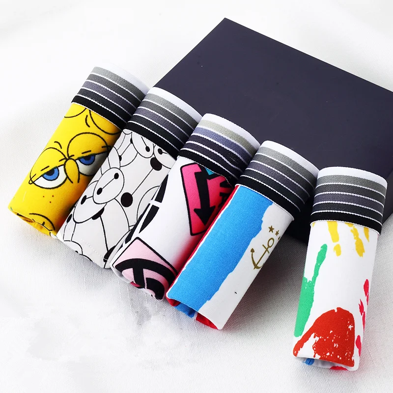 Wlkwo 5Pcs/Lot Fashion Underwear Lovely Cartoon Print Man Boxers Homme Comfortable Underpants Soft Breathable Male Panties