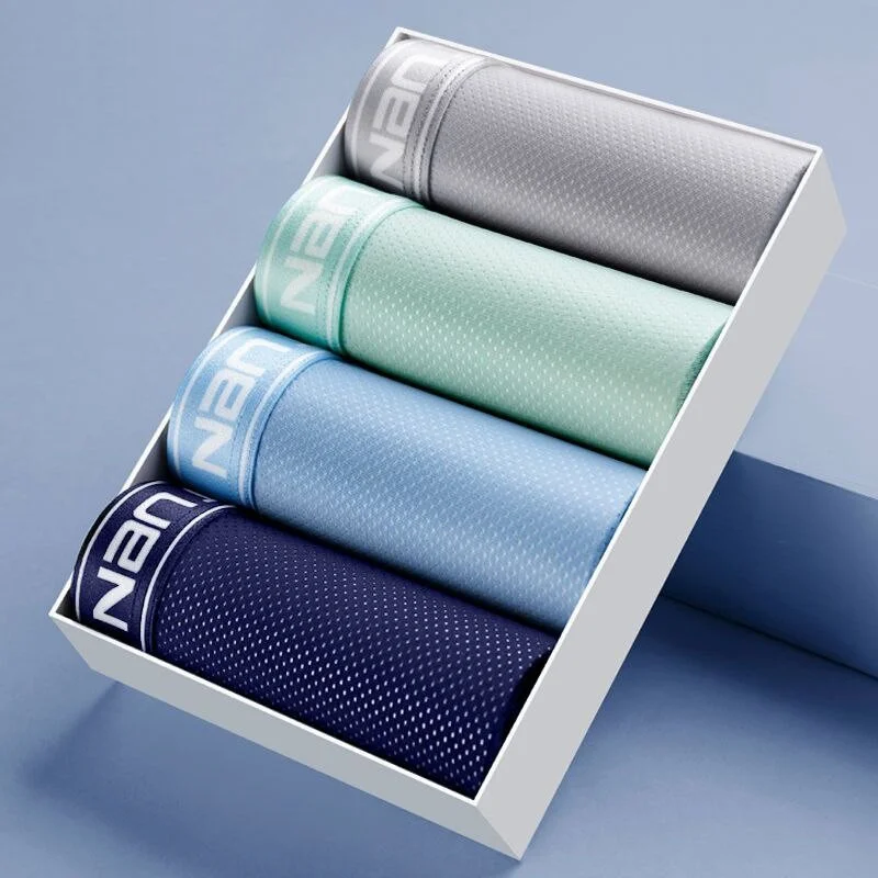 Wlkwo Men's Mesh Boxer Shorts Cool Ice Silk Underwear Breathable Underpants Sexy Slim Boxer Man Moisture Absorbent Elastic Panties