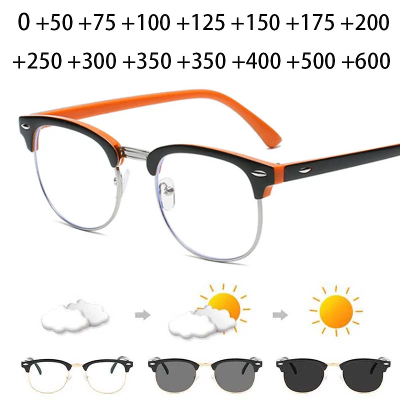 Hyperopia Diopter SPH 0 +0.5 +1 +1.5 +2 +2.5 +3 +3.5 +4 +4.5 +5 +5.5 +6.0 Half Metal Frame Photochromic Finished Reading Glasses