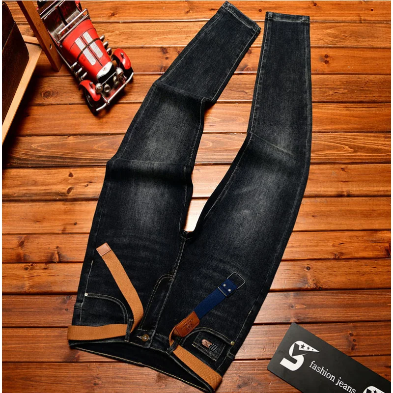 Autumn high-end jeans men's fashion design slim fit version with small feet 2025 new trend Korean version elastic pants