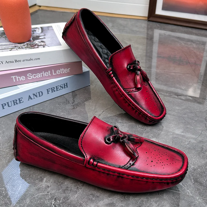 Kasomalang Handmade Genuine Leather Casual Shoes Fashion Design Loafers Mens Comfortable Slip on Flats Hot Sale Moccasins Driving Footwear