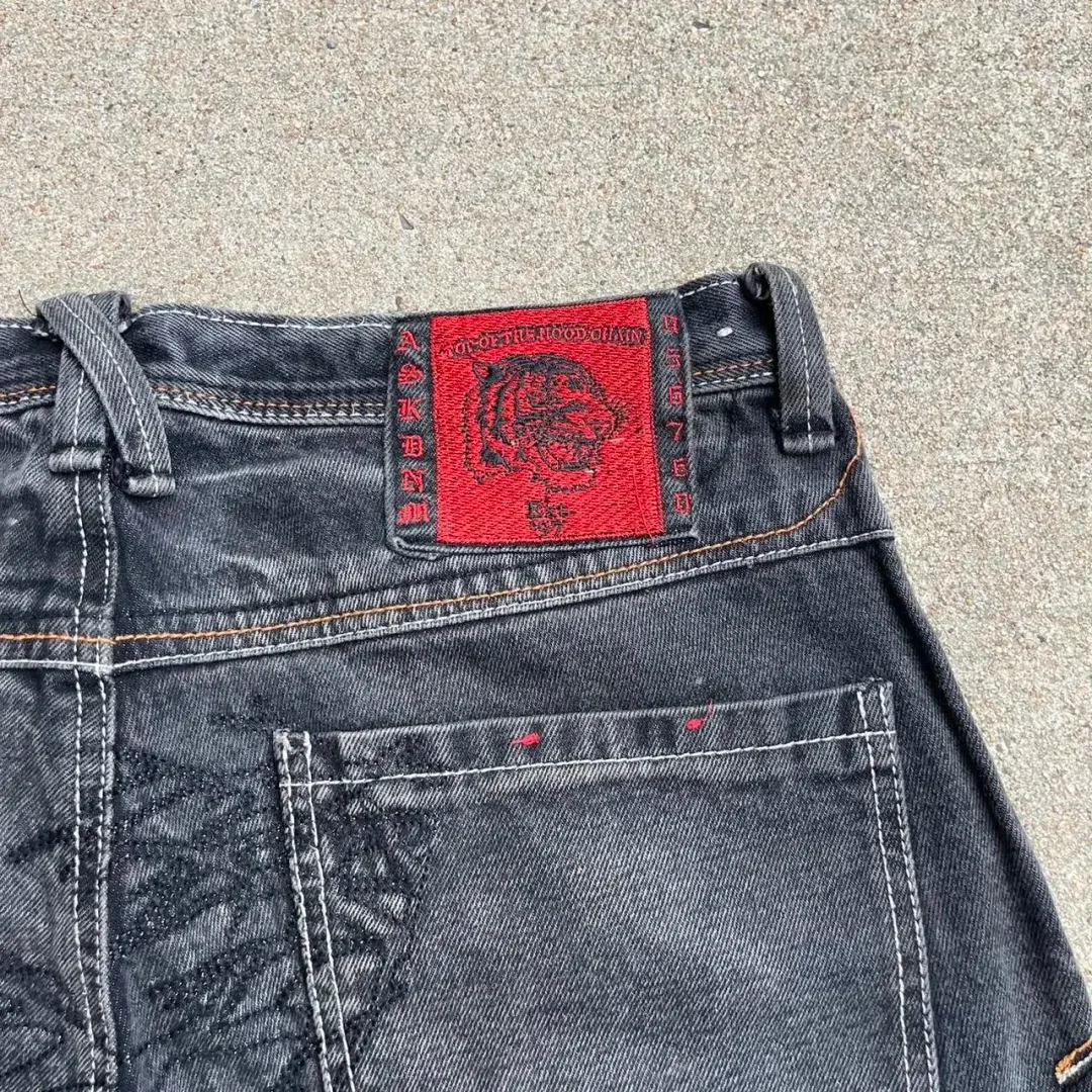 Retro Black Baggy Denim Gym Harajuku Hip Hop Embroidery Y2K Shorts Shorts Mens New High Waist Wide Leg Gothic Basketball Shorts