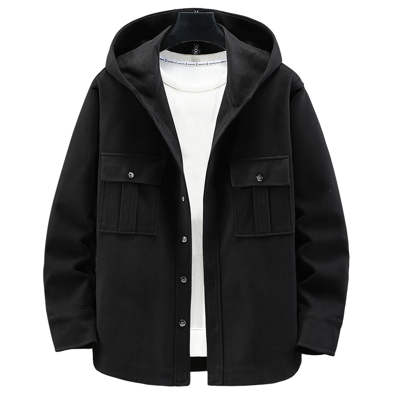 Designed for the modern man, this casual coat features a woolen texture and comes with a hood, making it perfect for those cooler seasons. The long sleeves provide extra warmth and protection against the wind.