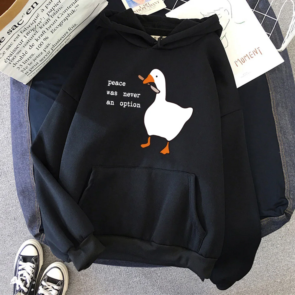 Tuledai Peace Was Never An Option Goose Printing Mens Hoodies Cute Casual Pullover Creativity Pocket Warm Pullovers Fashion Male Hoody