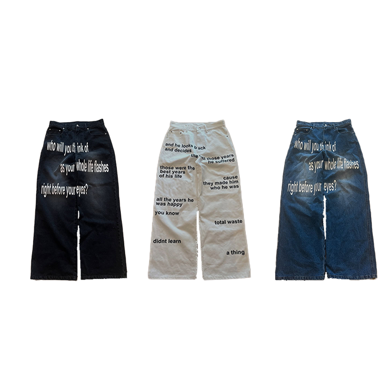 Y2K Narrow Straight Tube Retro American Printed Letter Pattern Jeans High Street Hip Hop Fashion Casual Men Women Wide Leg Jeans Size : S Waist:78cm Hips:108cmM Waist:80cm Hips:110cmL Waist:84cm Hips:114cmXL Waist:88cm Hips:118cmXXL Waist:92cm Hips:122cmsometimes has some errors, but always within 3cm." Please note 1 cm = 0.39 inch,1 inch = 2.54 cm. Please feel free to contact us when finding difficulty in choosing size,we will give you the best option.